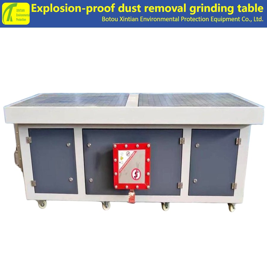 Miljövänligt och effektivt: Det explosionssäkra dammborttagningsslipbordet tar bort damm vid källan, kontrollerar effektivt stoftutsläpp, minskar miljöföroreningar och förarens hälsorisker.